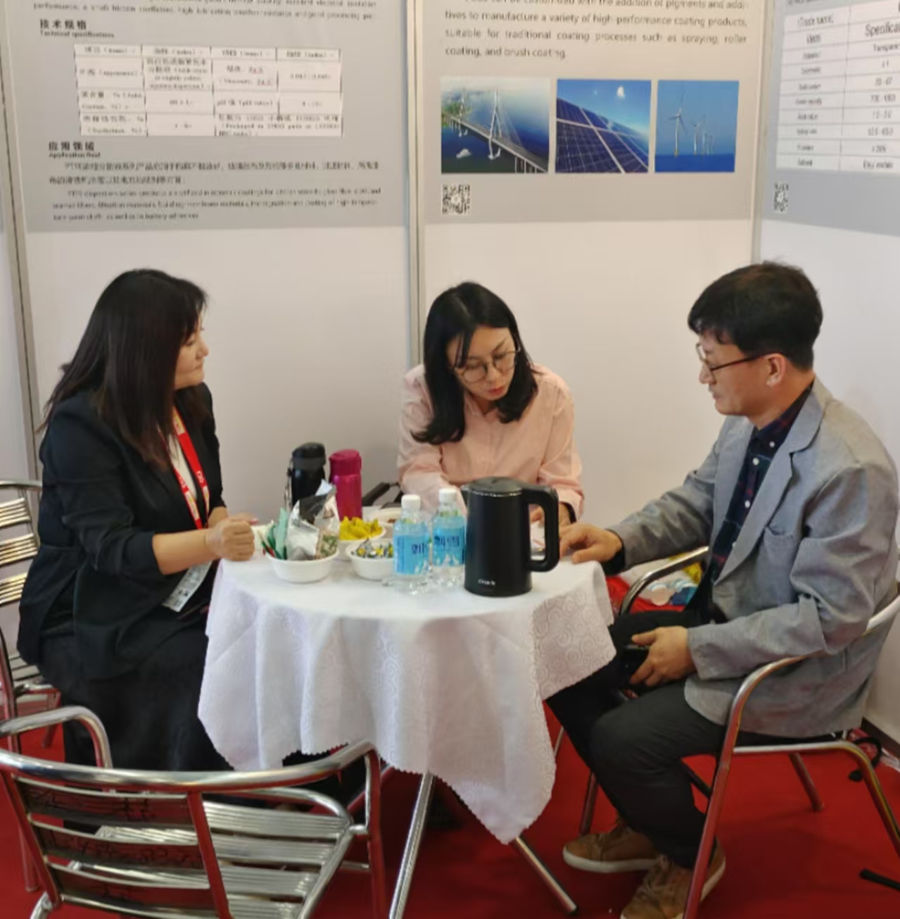 公司產品憑借其卓越的耐候性,優異的耐腐蝕性、光澤性、耐污性等特點,贏得眾多潛在客戶的高度評價與廣泛認可。在本展區,眾多國內外客戶駐足參觀,公司專業團隊與多國客戶深入交流,就產品合作事宜深入洽談,介紹了產品特點、技術優勢及企業發展規劃,客戶對福諾歐的產品技術高度贊揚,表達了強烈的合作意向。